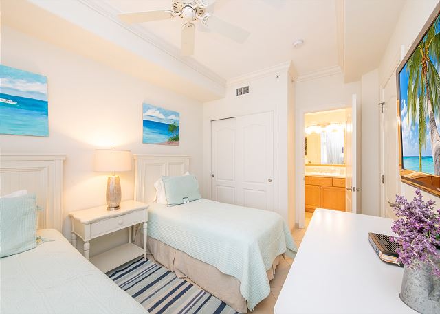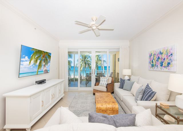 Villa 7 is located on the second floor with a magnificent view of the crystal clear turquoise sea and white sand beach. This lovely, well appointed villa offers three beautifully furnished bedrooms with ensuite baths. The villa also features flat screen televisions and Ipod stations, great kitchen, fully equipped laundry room and a private screened in balcony perfect for sitting back and enjoying the warm Caribbean evenings and gorgeous sunsets.