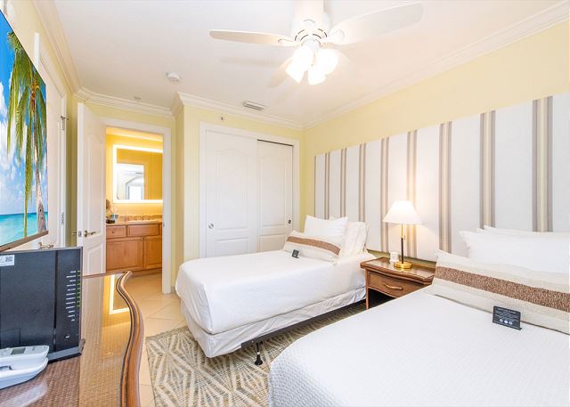 Villa 29 is a sixth floor three bedroom, three bathroom corner villa from which you can enjoy breathtaking unobstructed views of famous Seven Mile Beach. This villa is designer furnished and beautifully decorated. The living room and bedrooms all have LG flat screen televisions and Ipod stations. A well appointed kitchen, private screened balcony, air conditioning, ceiling fans and a separate laundry area complete this lovely home away from home.