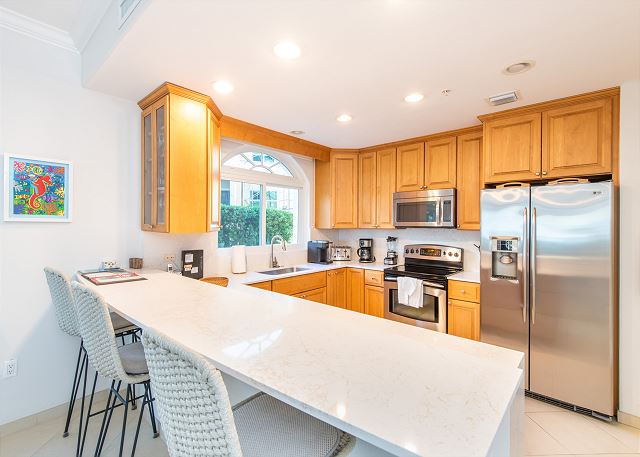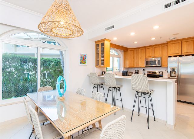 Villa 5 is located on the first floor with easy access to the pool, hot tub and white sand beach. This lovely, well appointed villa offers three beautifully furnished bedrooms with ensuite baths. The villa also features flat screen TV's, great kitchen, laundry room and a private screened in balcony perfect for sitting back and enjoying the warm Caribbean evenings and gorgeous sunsets.